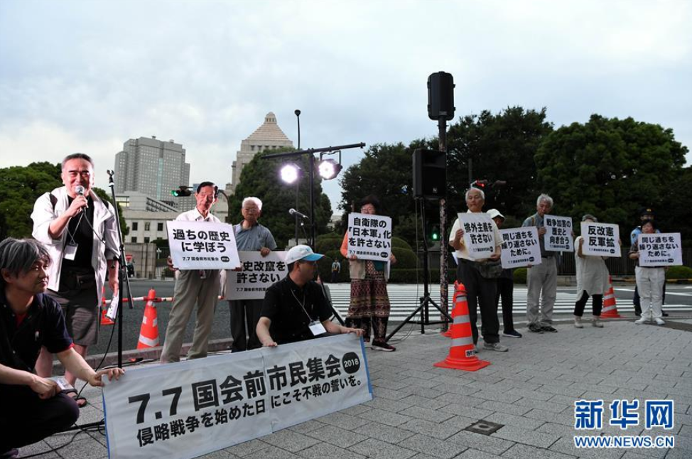 7月7日,东京市民在日本国会前举行集会。 当日,日本东京市民团体百余人举行集会,纪念“七七事变”81周年。 新华社记者马平摄