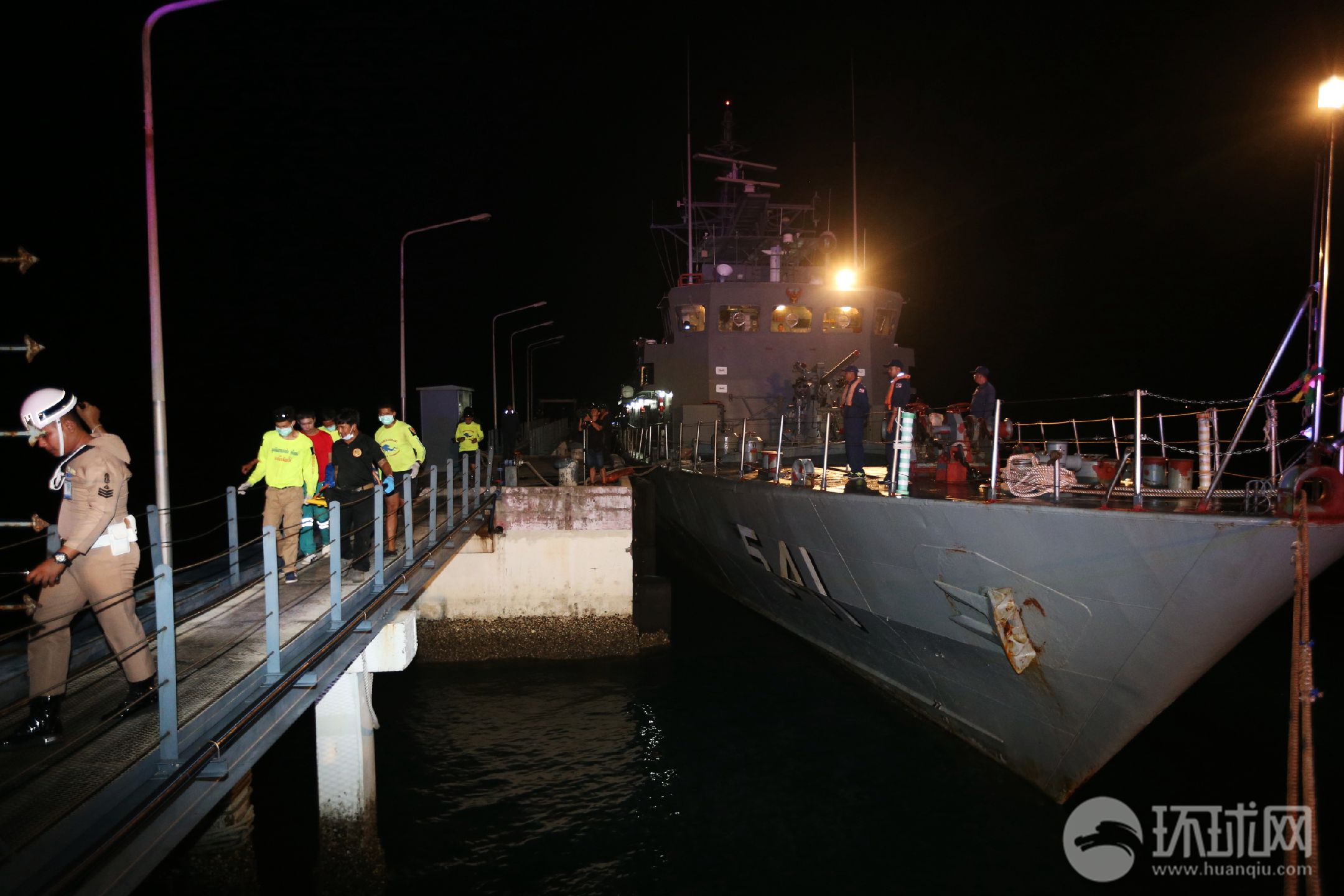普吉岛沉船事故救援现场:泰军舰运三具遇难者遗体回港