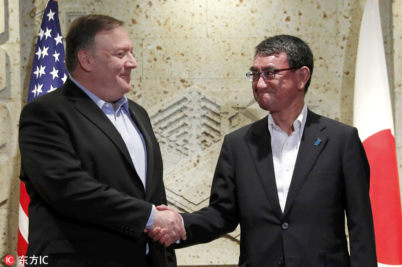 美国务卿蓬佩奥到访日本 会晤日外相河野太郎