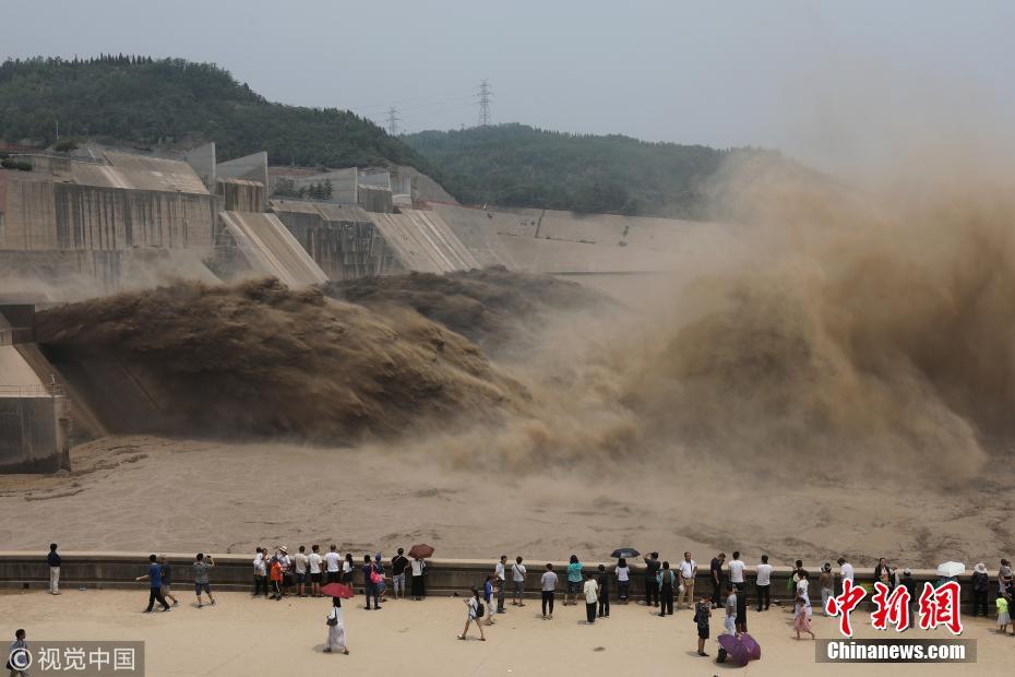 济源民众围观壮观的泄洪场面。 徐宏星 摄 图片来源:视觉中国