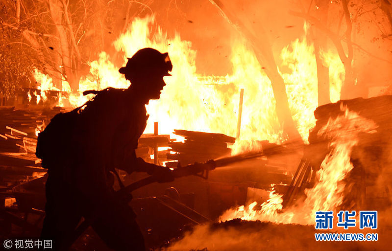 7月6日,美国加州戈利塔,山火蔓延吞噬房屋。(图片来源:视觉中国)