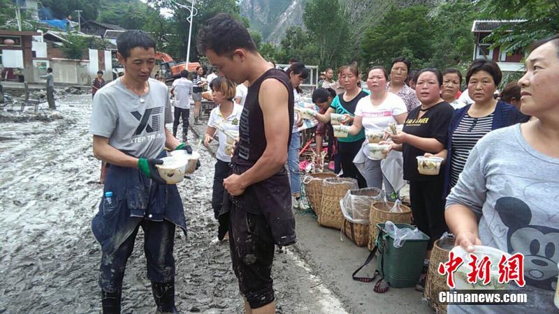 甘肃:村民"开大灶"为泥石流受灾群众供饭