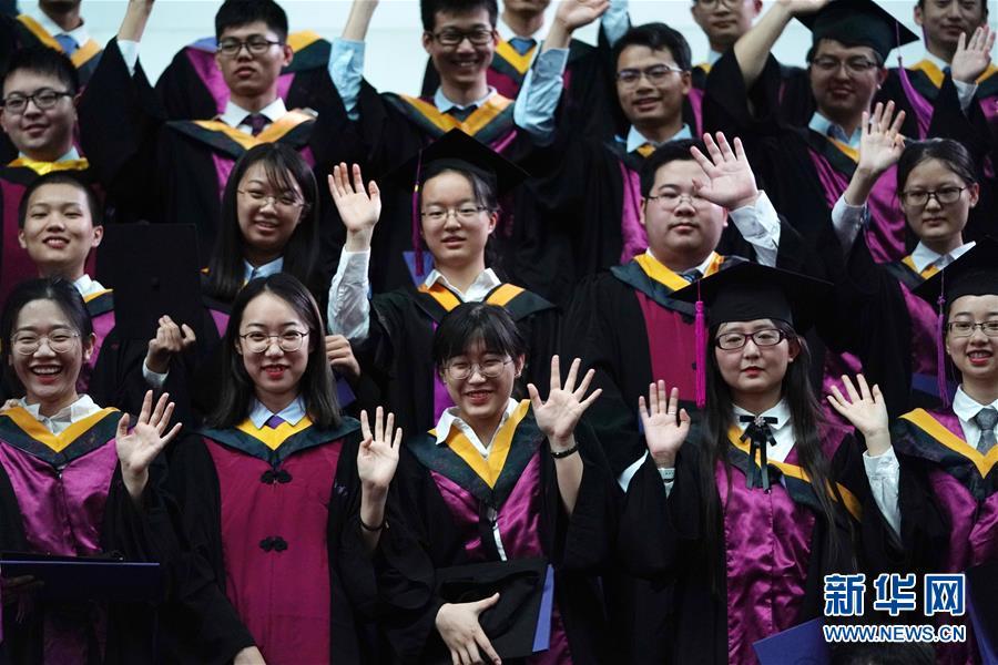 7月8日,参加清华大学2018年本科毕业典礼的毕业生在典礼开始前挥手合影。当日,清华大学2018年本科生毕业典礼暨学位授予仪式在清华大学综合体育馆举行,3000余名本科毕业生身着学位服参加典礼。新华社记者鞠焕宗 摄