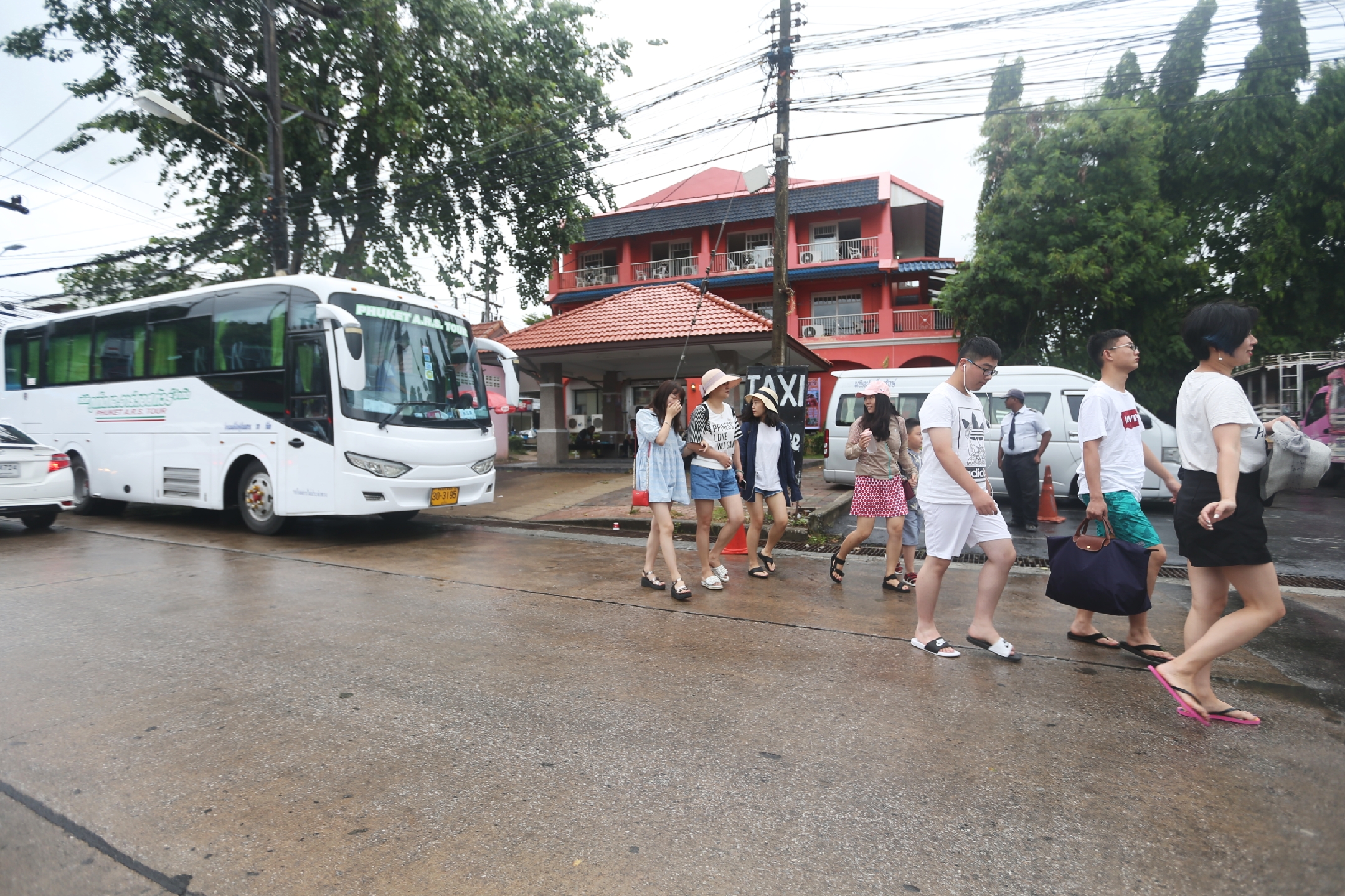 准备出海游的大陆游客被旅游大巴载至查龙码头。环球时报赴泰国普吉记者 崔萌/摄