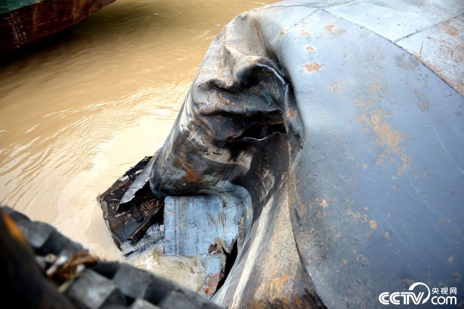 7月9日11时50分许,由丰都开往重庆的货船“煊龙818”在靠泊长江南岸纳溪沟廖家凼码头时,船舶进水断缆,漂流至下游6公里左右的铜锣峡大磨水域翻覆。事发时,该货船装载水泥2800吨。 视觉中国