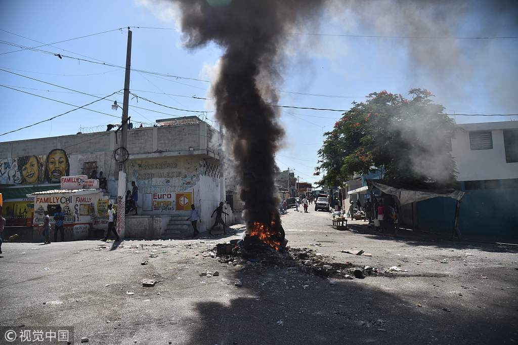 当地时间2018年7月9日,海地太子港,海地政府上调油价引发骚乱,民众持续进行示威抗议活动。