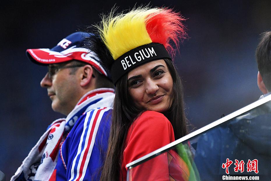 看台上一位比利时女球迷。 中新社记者 田博川 摄