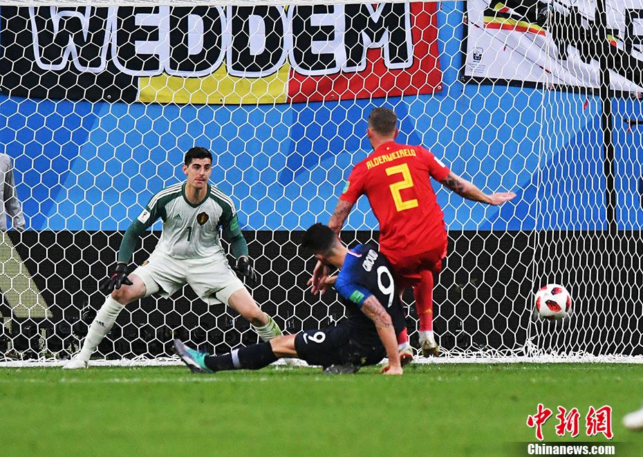 伤停补时阶段,格列兹曼禁区前沿获得空位,抬脚打向远角,被比利时门将库尔图瓦没收。图为法国队错失破门机会。 中新社记者 田博川 摄