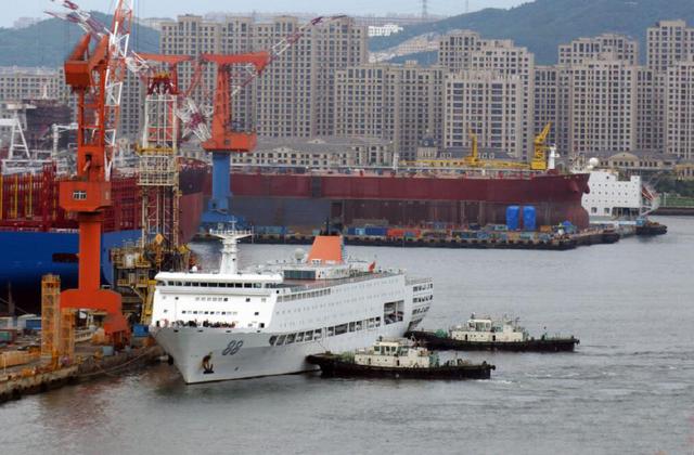 拖轮辅助88舰靠泊。