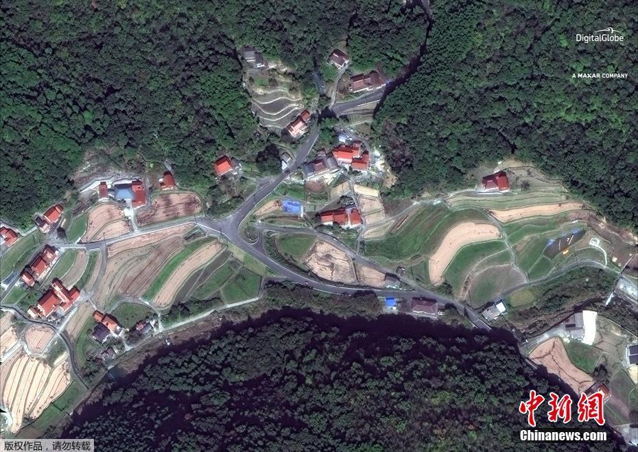 当地时间2017年10月26日,日本Enshoji,Enshoji南部“洪水前”的卫星图像。