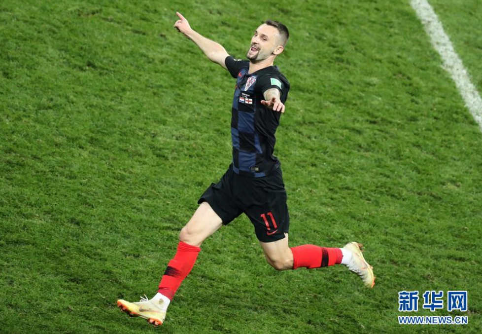 7月11日,克罗地亚队球员莫德里奇在比赛后庆祝胜利。当日,在莫斯科进行的2018俄罗斯世界杯足球赛半决赛中,克罗地亚队与英格兰队在90分钟内战成1比1平。最终,克罗地亚队经过加时赛以2比1战胜英格兰队,历史上首次晋级世界杯决赛。新华社记者 吴壮 摄