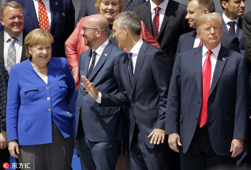 当地时间2018年7月11日,比利时布鲁塞尔,为期两天的北约峰会在当地举行,多国领导人出席会议拍摄全家福。