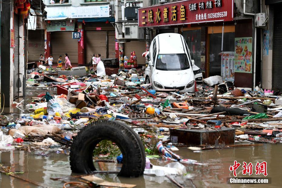7月11日,强台风“玛莉亚”带来的狂风暴雨导致福建省霞浦县牙城镇受灾严重,一片狼藉。当日上午9点10分前后,今年第8号台风“玛莉亚”在福建连江黄岐半岛沿海登陆,登陆时中心附近最大风力14级。中新社记者 王东明 摄