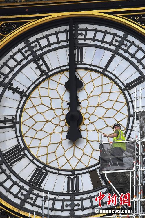 英国大本钟“改头换面” 工人更换钟面玻璃