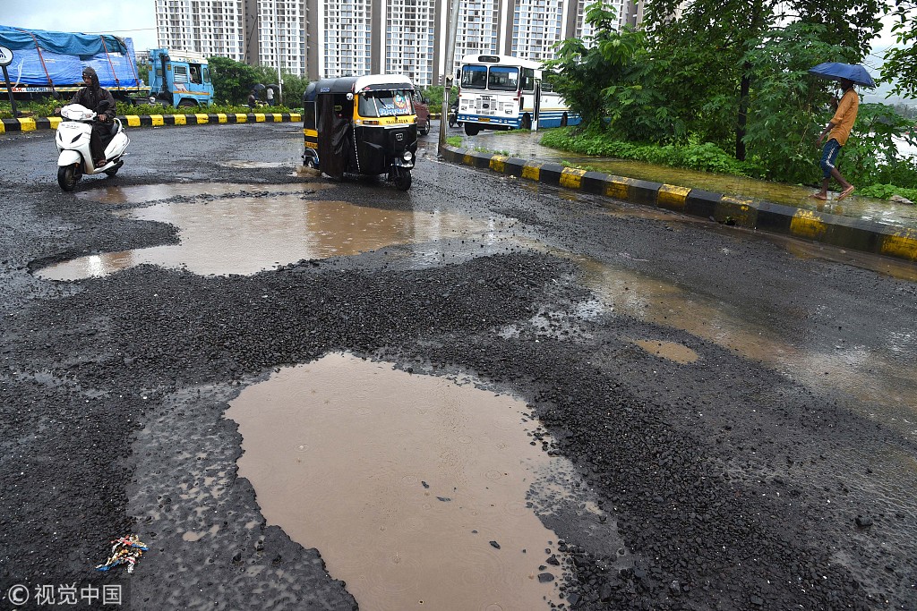 印度孟买遭暴雨袭击 城市道路泥泞出行艰难