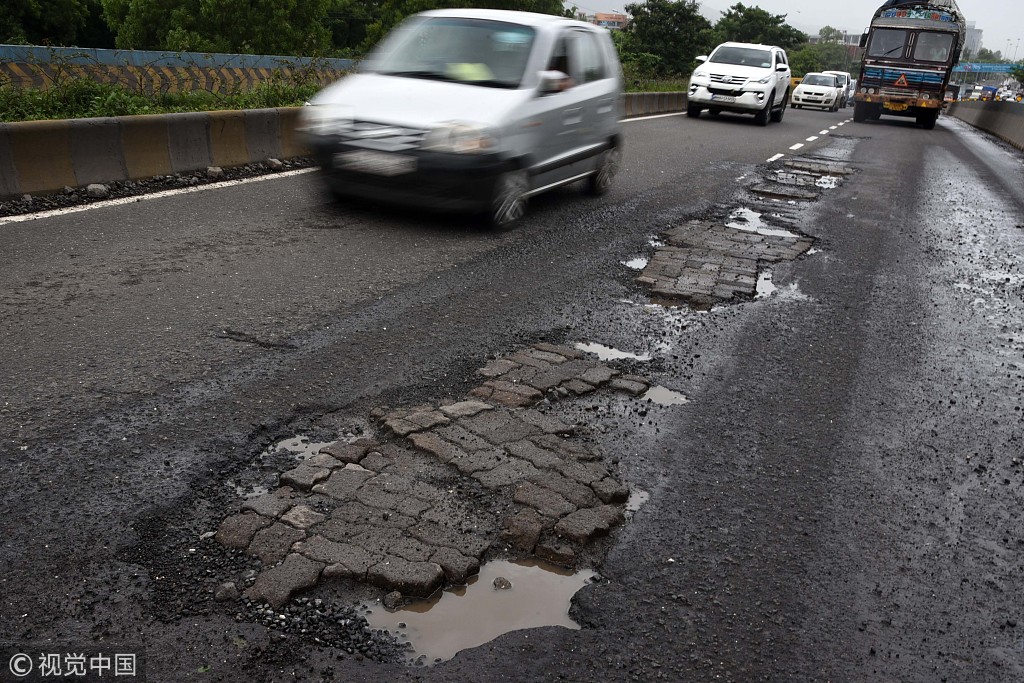 印度孟买遭暴雨袭击 城市道路泥泞出行艰难