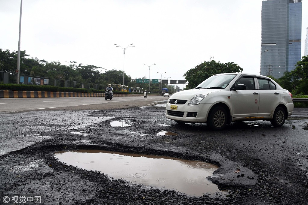 印度孟买遭暴雨袭击 城市道路泥泞出行艰难