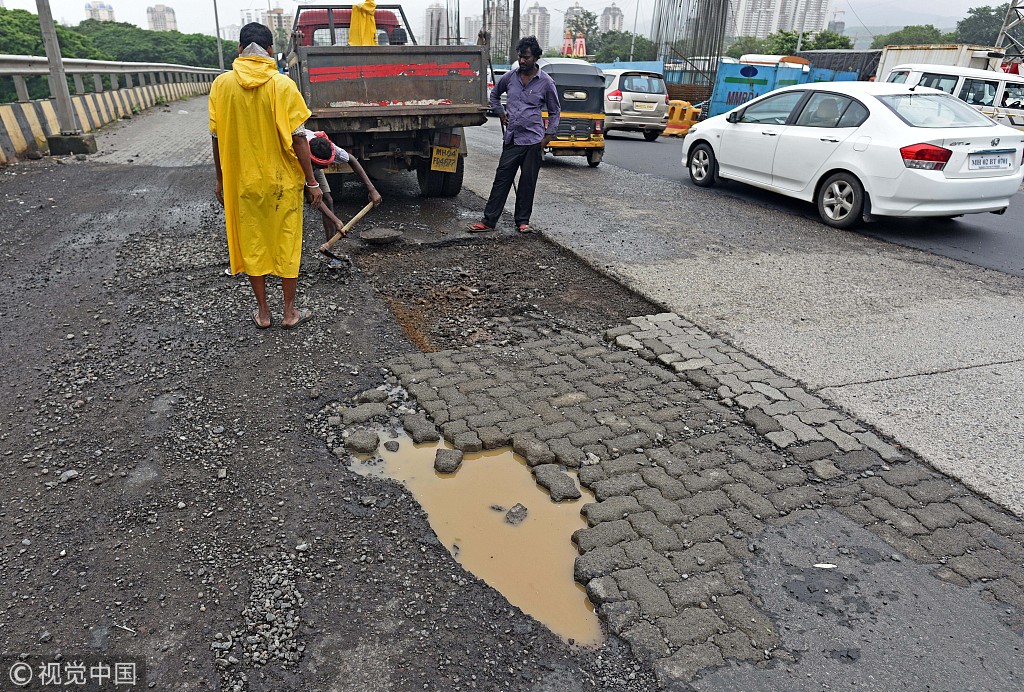 印度孟买遭暴雨袭击 城市道路泥泞出行艰难