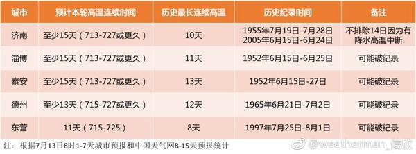 据中国气象局公共气象服务中心首席分析师信欣统计,山东局地高温或破纪录。