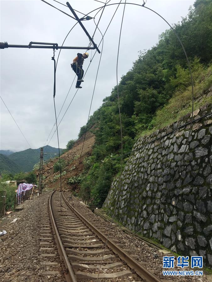 7月13日,工作人员在宝成铁路陕西略阳段进行抢修工作。