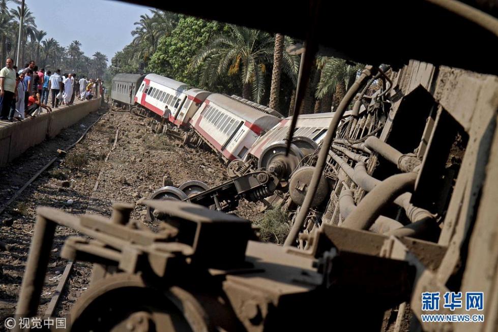 当地时间2018年7月13日,埃及吉萨,一辆客运列车在当地发生脱轨事故。(图片来源:视觉中国)