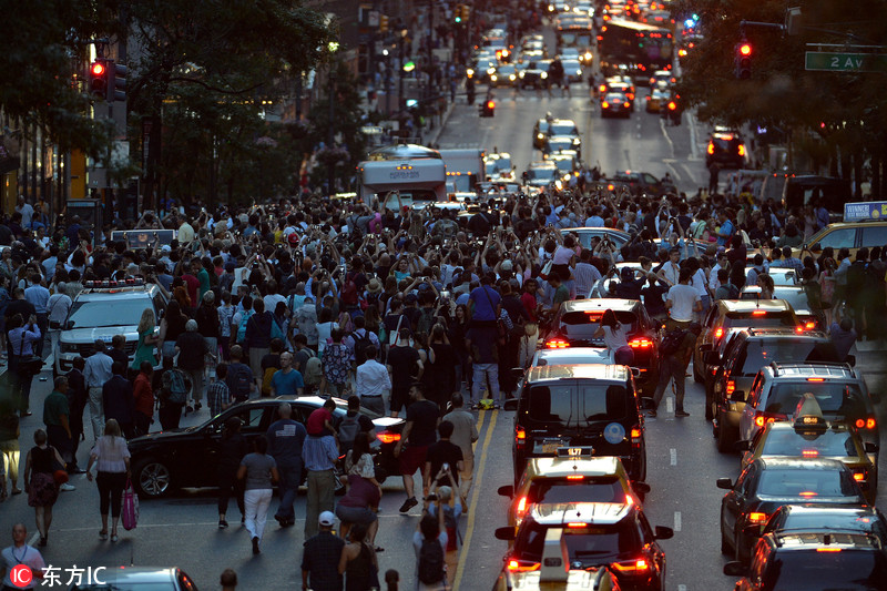 "曼哈顿悬日"再现纽约 路人围观交通瘫痪