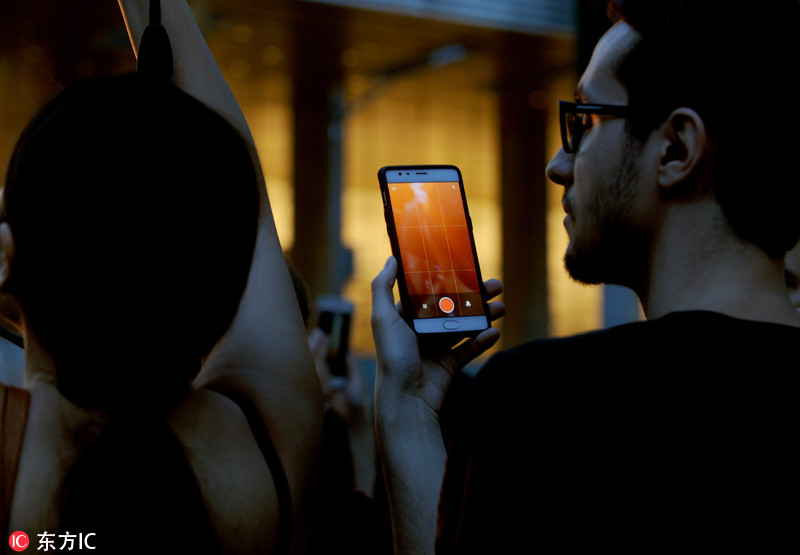 当地时间2018年7月12日,美国纽约,“曼哈顿悬日”再现纽约上空,吸引大量市民游客前往欣赏和拍照,人群拥挤导致曼哈顿街区交通陷入瘫痪。