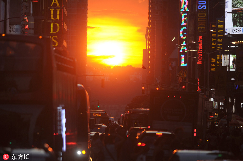 "曼哈顿悬日"再现纽约 路人围观交通瘫痪
