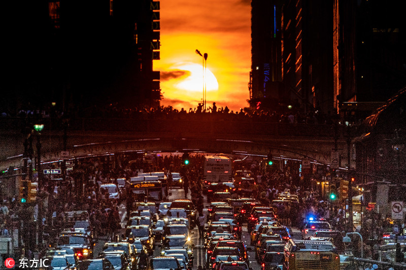 "曼哈顿悬日"再现纽约 路人围观交通瘫痪