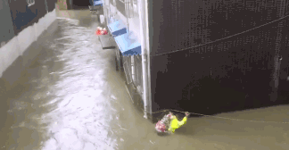 在确保安全后,这场与洪水抢时间的生死救援打响。从90多岁的老人,到6岁大的小孩,李叶和消防人员都在不断地重复着一个动作:一只手抓稳背上的人,另一只手则抓住安全绳,缓步走在近胸口深的水中,将背上的人一趟趟送到安全地带,“在这一处,就来回跑了至少5趟。”