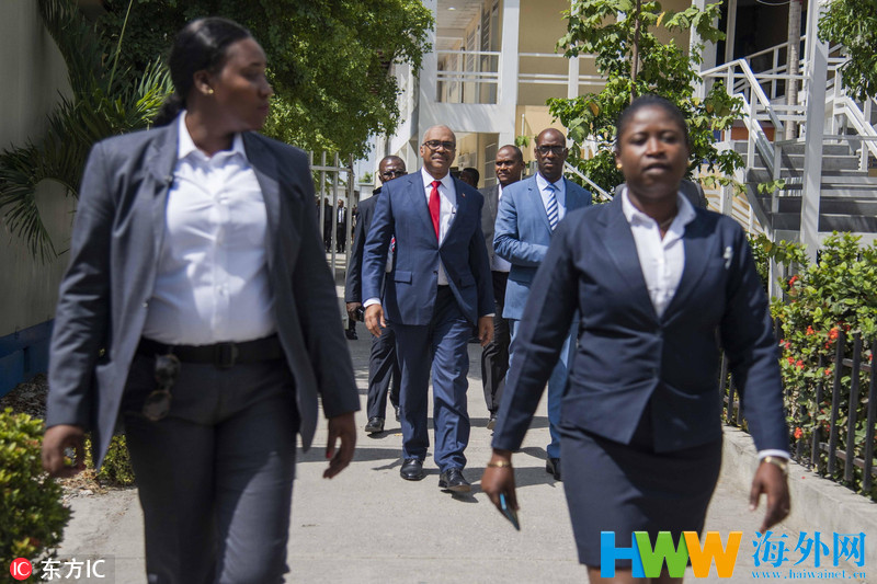 当地时间2018年7月14日,海地太子港,近日,因民众不满政府上调油价引发国内暴力骚乱,海地议会当天召开会议商讨是否撤回对总理的信任投票。海地总理雅克-居伊-拉丰唐出席议会会议宣布辞职。Jean Marc Herve Abelard/东方IC