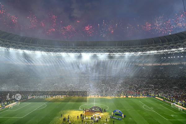 2018俄罗斯世界杯落幕,法国队4:2战胜克罗地亚,“高卢雄鸡”时隔20年再次捧起大力神杯,图为法国队庆祝夺冠。