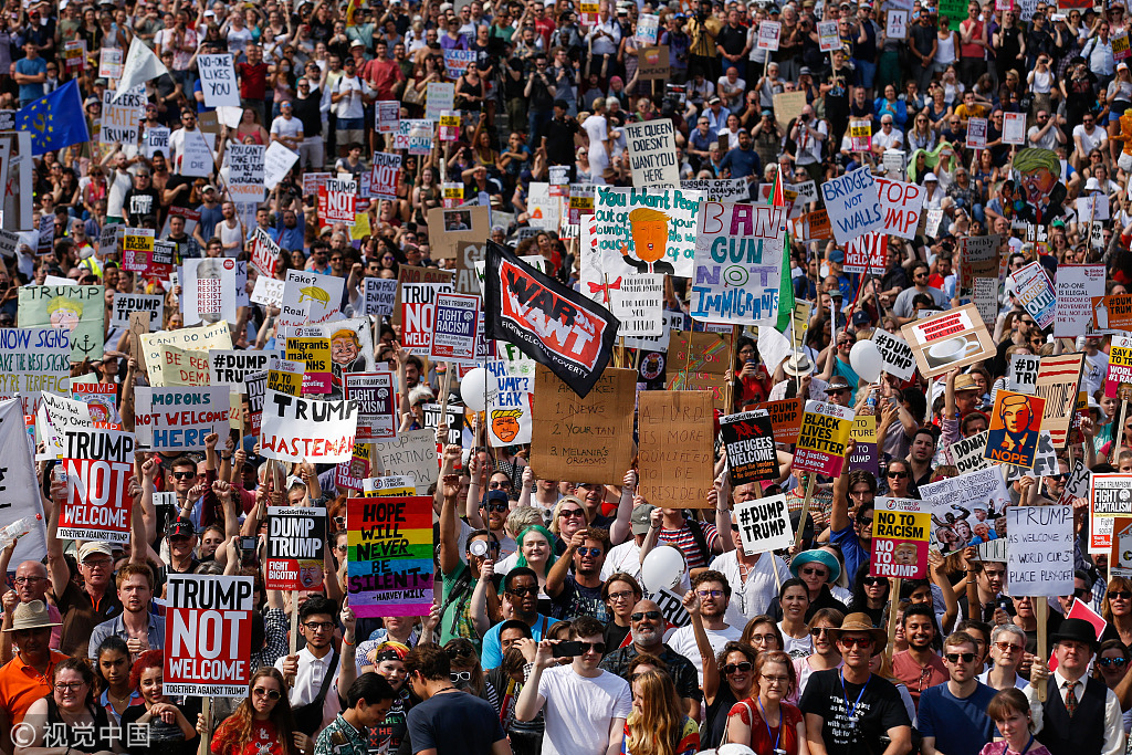 ​当地时间2018年7月13日,英国伦敦,伦敦街头出现超过25万人的反特朗普游行,抗议特朗普访英。