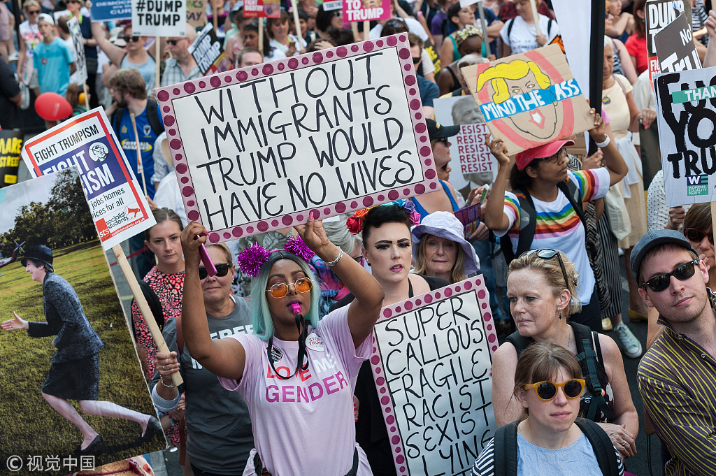 ​当地时间2018年7月13日,英国伦敦,伦敦街头出现超过25万人的反特朗普游行,抗议特朗普访英。