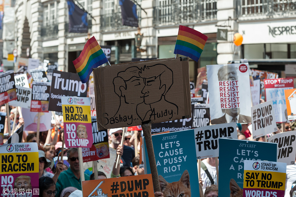 伦敦街头出现超过25万人的反特朗普游行
