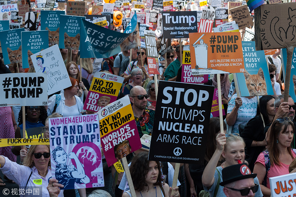 伦敦街头出现超过25万人的反特朗普游行