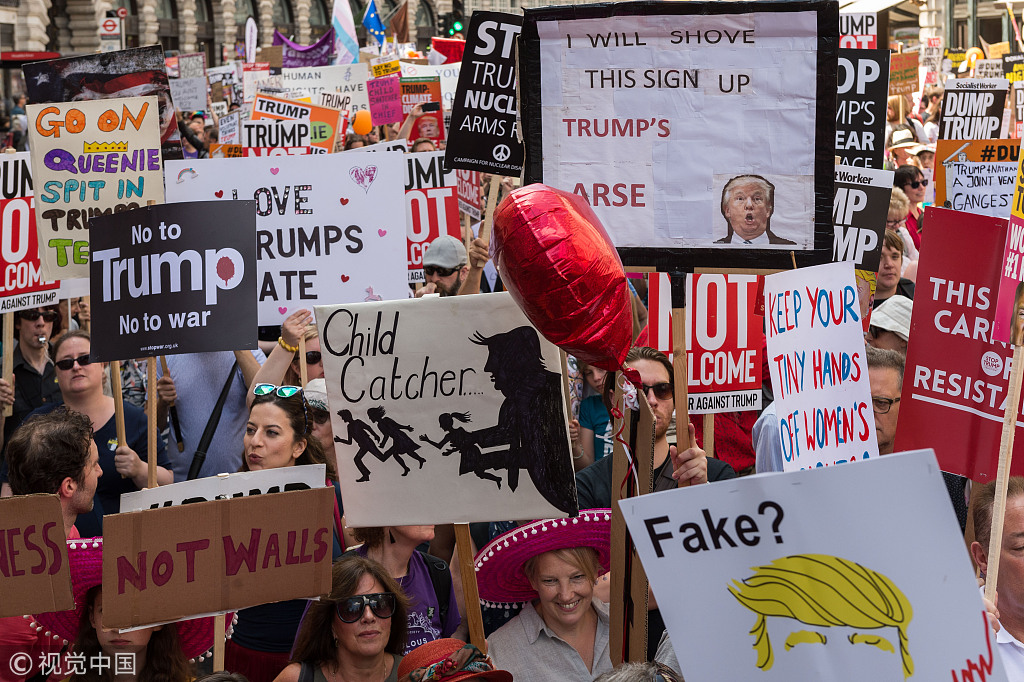 伦敦街头出现超过25万人的反特朗普游行