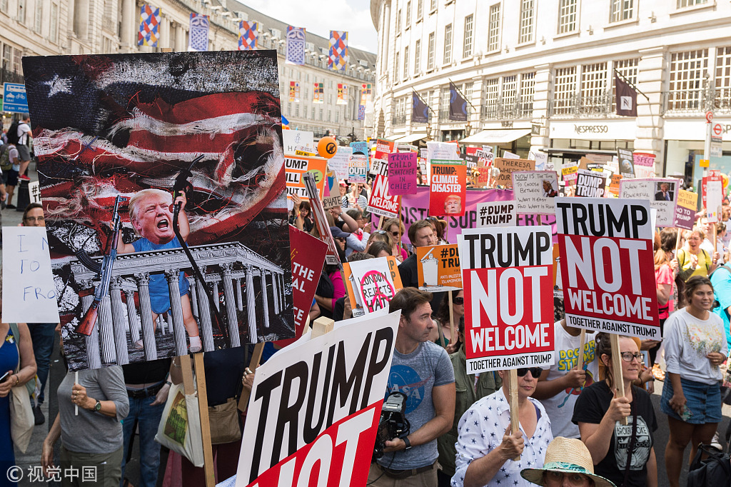 ​当地时间2018年7月13日,英国伦敦,伦敦街头出现超过25万人的反特朗普游行,抗议特朗普访英。