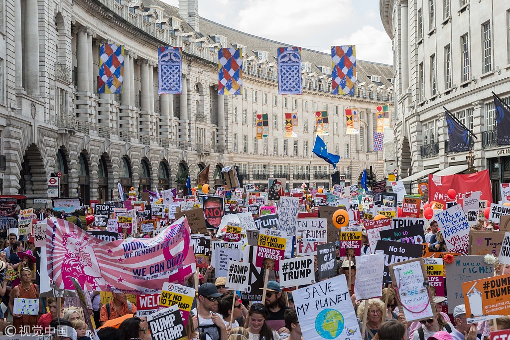 伦敦街头出现超过25万人的反特朗普游行