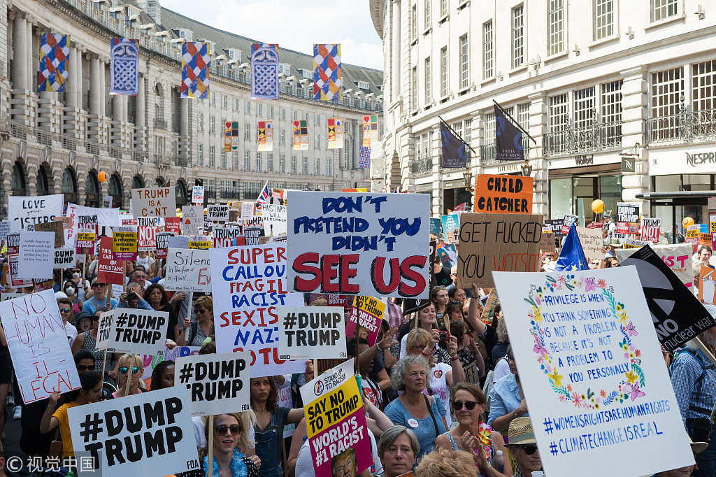伦敦街头出现超过25万人的反特朗普游行