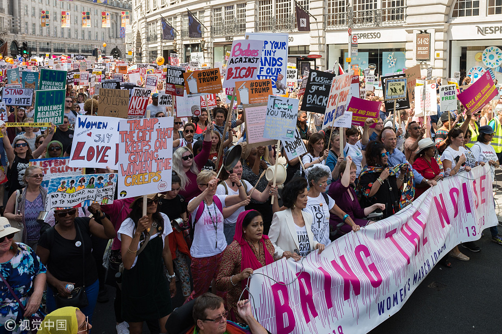 伦敦街头出现超过25万人的反特朗普游行