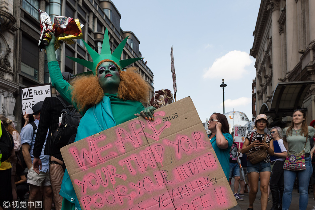 ​当地时间2018年7月13日,英国伦敦,伦敦街头出现超过25万人的反特朗普游行,抗议特朗普访英。
