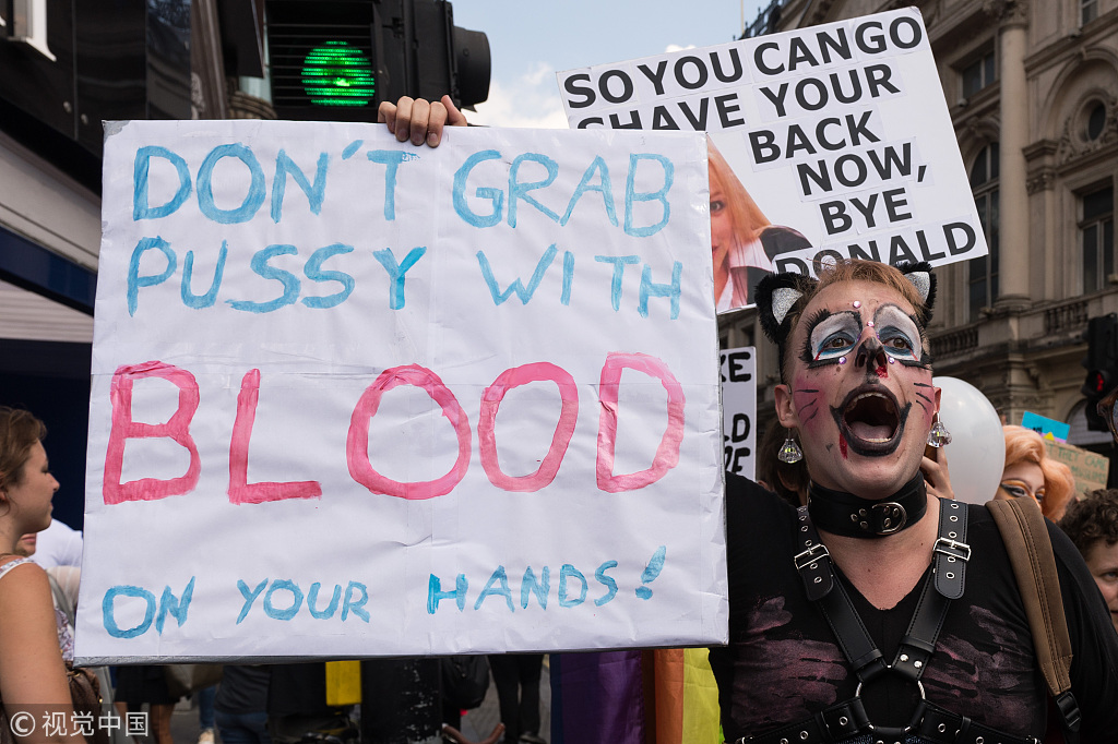 ​当地时间2018年7月13日,英国伦敦,伦敦街头出现超过25万人的反特朗普游行,抗议特朗普访英。
