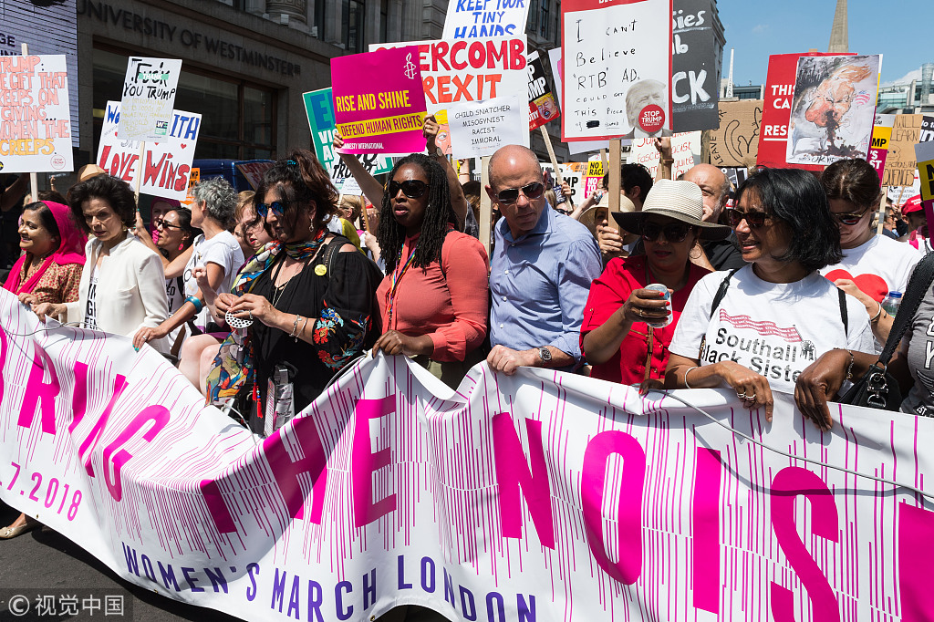​当地时间2018年7月13日,英国伦敦,伦敦街头出现超过25万人的反特朗普游行,抗议特朗普访英。
