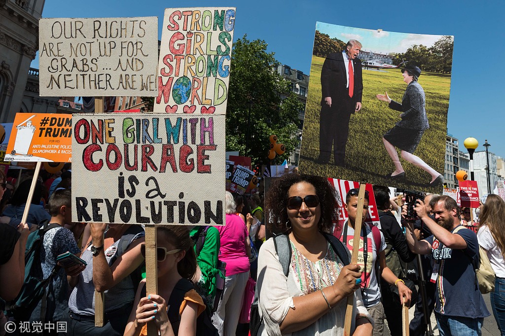 伦敦街头出现超过25万人的反特朗普游行