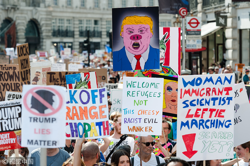 伦敦街头出现超过25万人的反特朗普游行