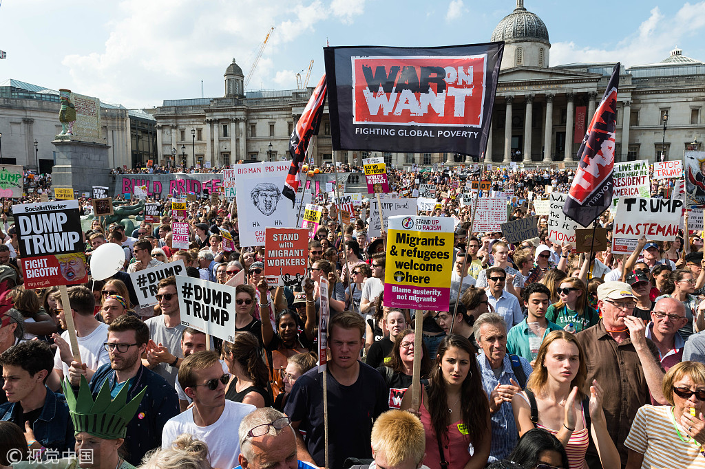 伦敦街头出现超过25万人的反特朗普游行