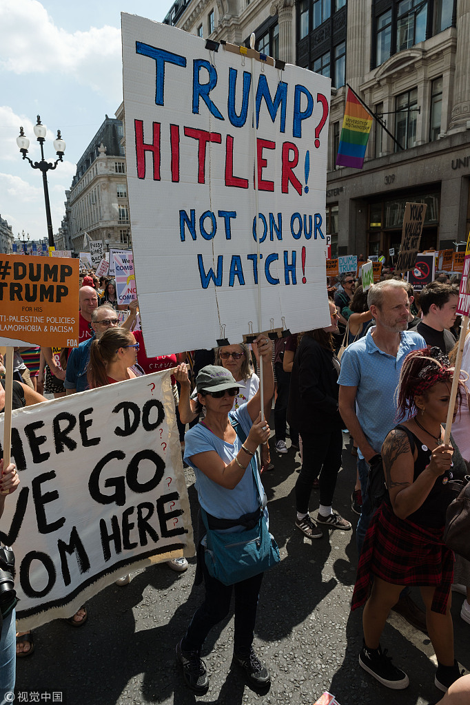 ​当地时间2018年7月13日,英国伦敦,伦敦街头出现超过25万人的反特朗普游行,抗议特朗普访英。