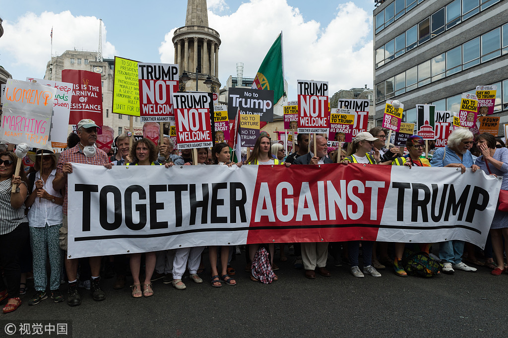 ​当地时间2018年7月13日,英国伦敦,伦敦街头出现超过25万人的反特朗普游行,抗议特朗普访英。