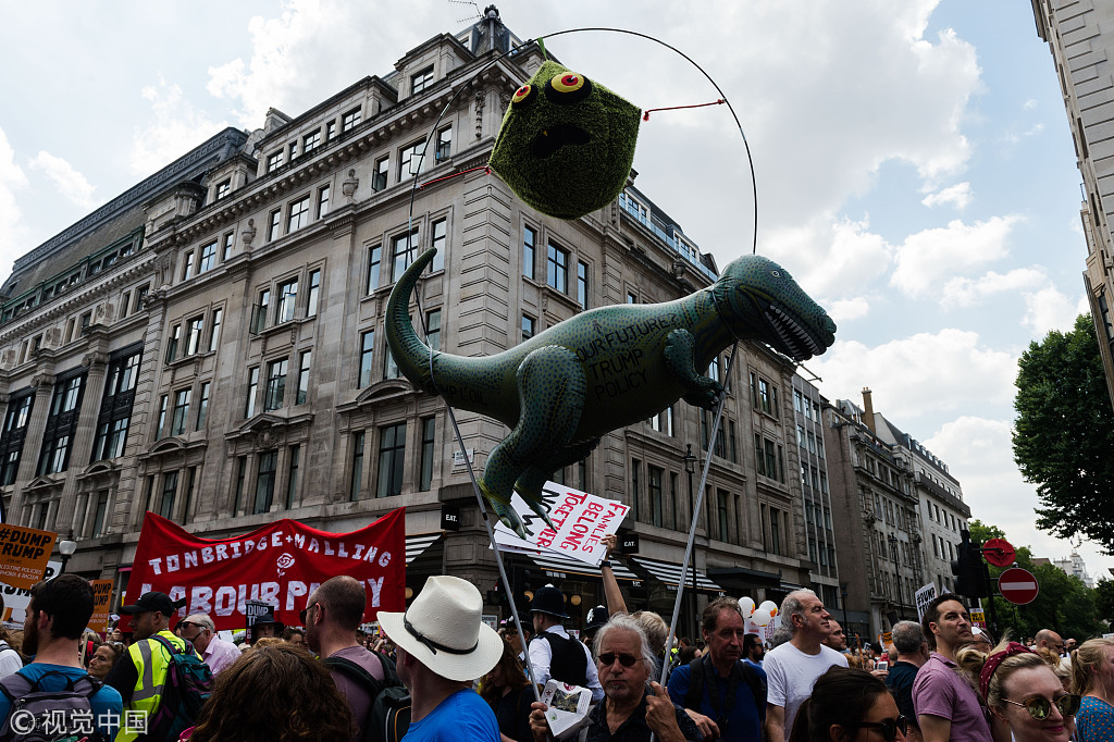 ​当地时间2018年7月13日,英国伦敦,伦敦街头出现超过25万人的反特朗普游行,抗议特朗普访英。